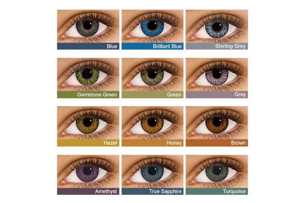 Air Optix Colors доступны в 12 цветах (Blue, Brilliant Blue, Sterling Grey, Gemstone Green, Green, Grey, Hazel, Honey, Brown, Amethyst, True Sapphire, Turquoise). Благодаря трехслойной технологии интеграции пигмента в материал линзы 3-in-1 Color Technology цвет глаз выглядит естественно: внешнее кольцо пигмента – подчеркивает выразительность глаз; среднее - определяет основной цвет; внутренне добавляет яркости и глубины.